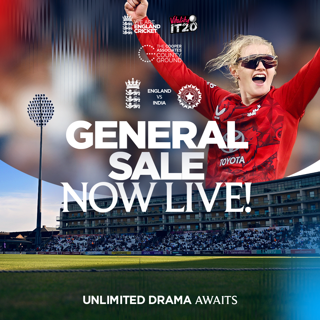 - One Cat C ticket to watch England vs India IT20 at the Cooper Associates County Ground in June 2026
