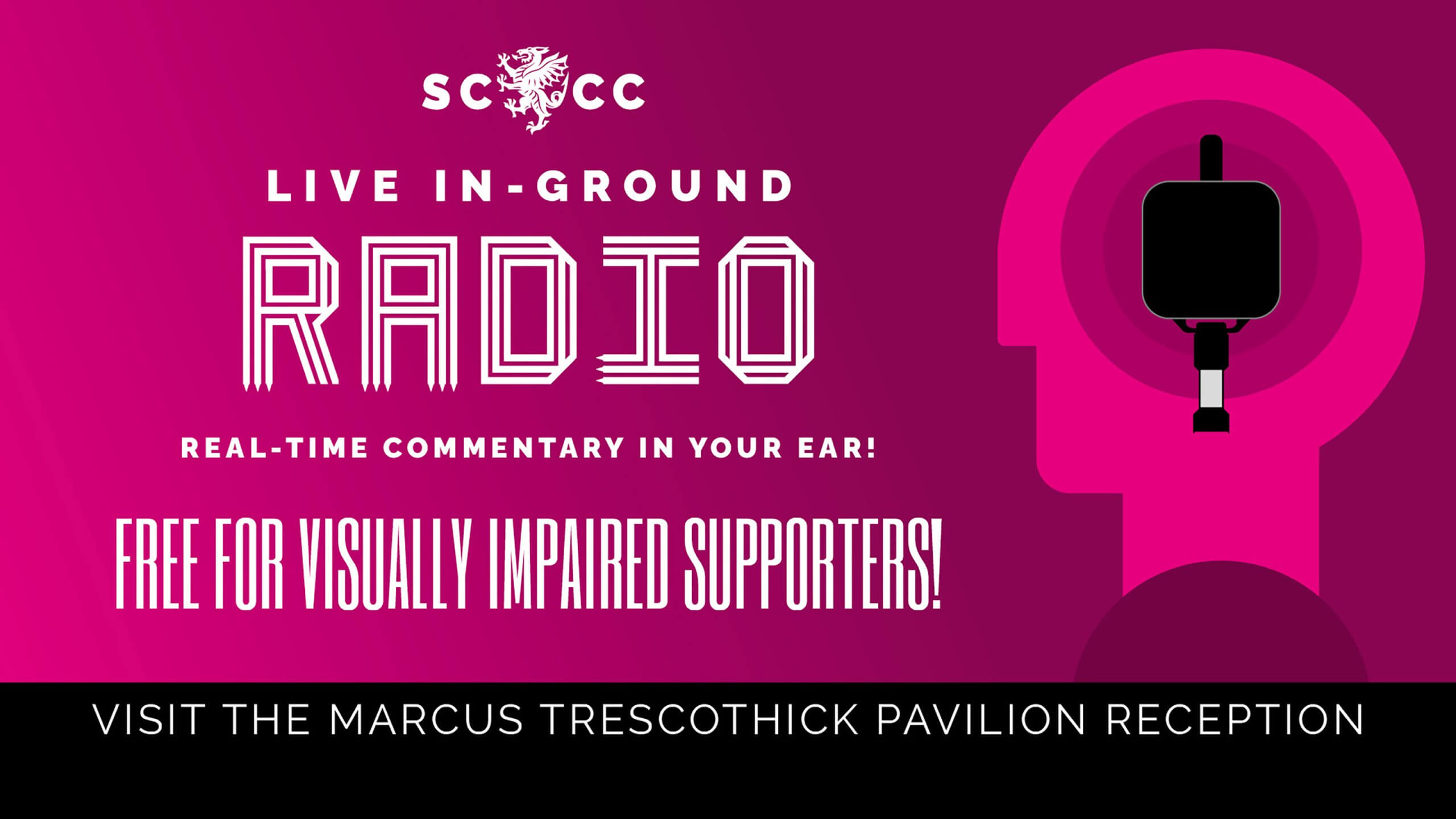 Members and supporters who require a free radio can collect one from Reception in the Marcus Trescothick Pavilion.
