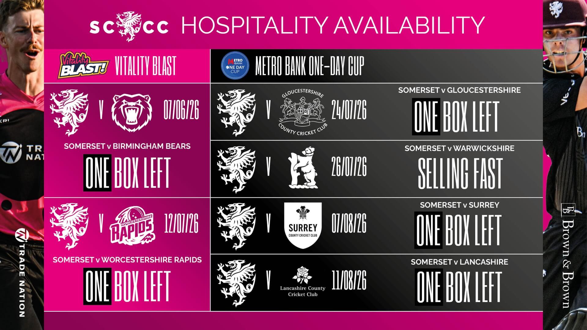 We only have two matchday boxes left for the Vitality Blast, but don’t despair; we have a number of alternative hospitality options available which will allow you to enjoy the action in style!