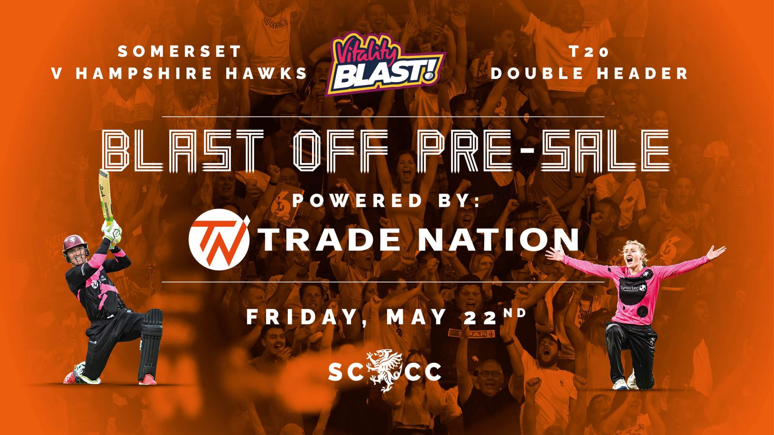We are delighted to be able to announce that we have once again teamed up with our Official Vitality Blast Partner, Trade Nation to offer an exclusive window to Somerset supporters to help celebrate Vitality Blast Off at the Cooper Associates County Ground.