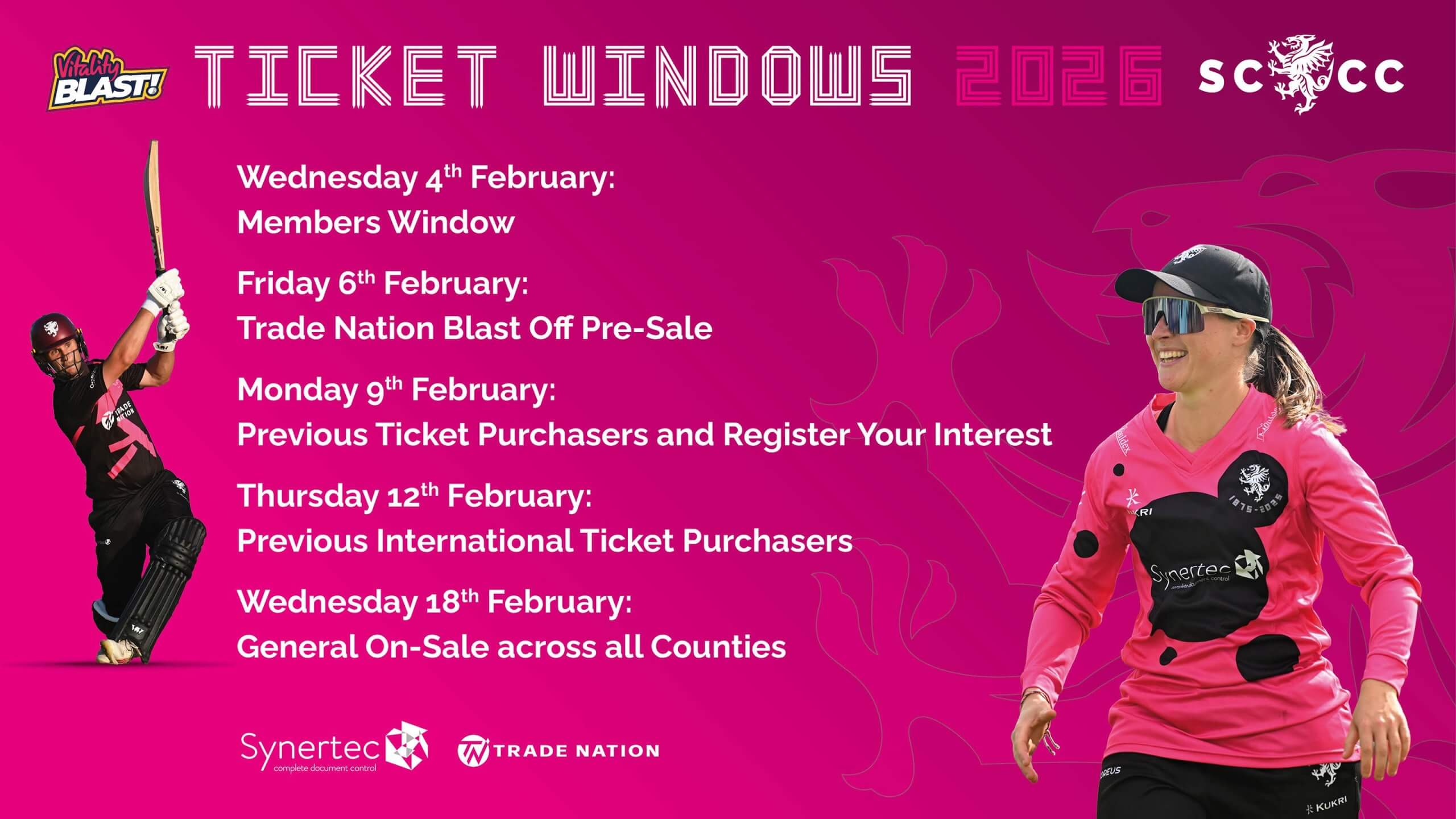 Somerset County Cricket Club can today officially announce our official Vitality Blast ticket priority windows.