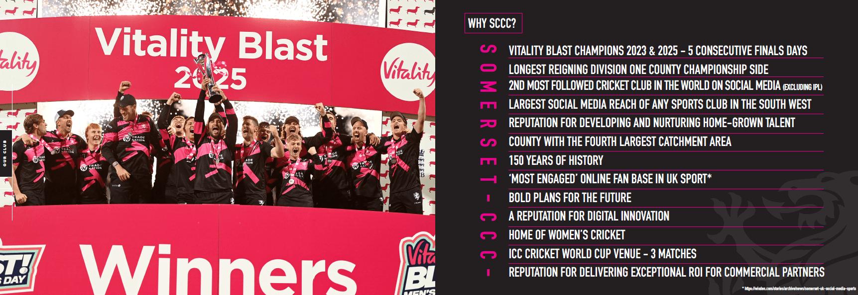 As the most-followed professional sports club in the South West and the UK’s leading County Cricket Club on social media, Somerset CCC offers a powerful platform to elevate your brand.