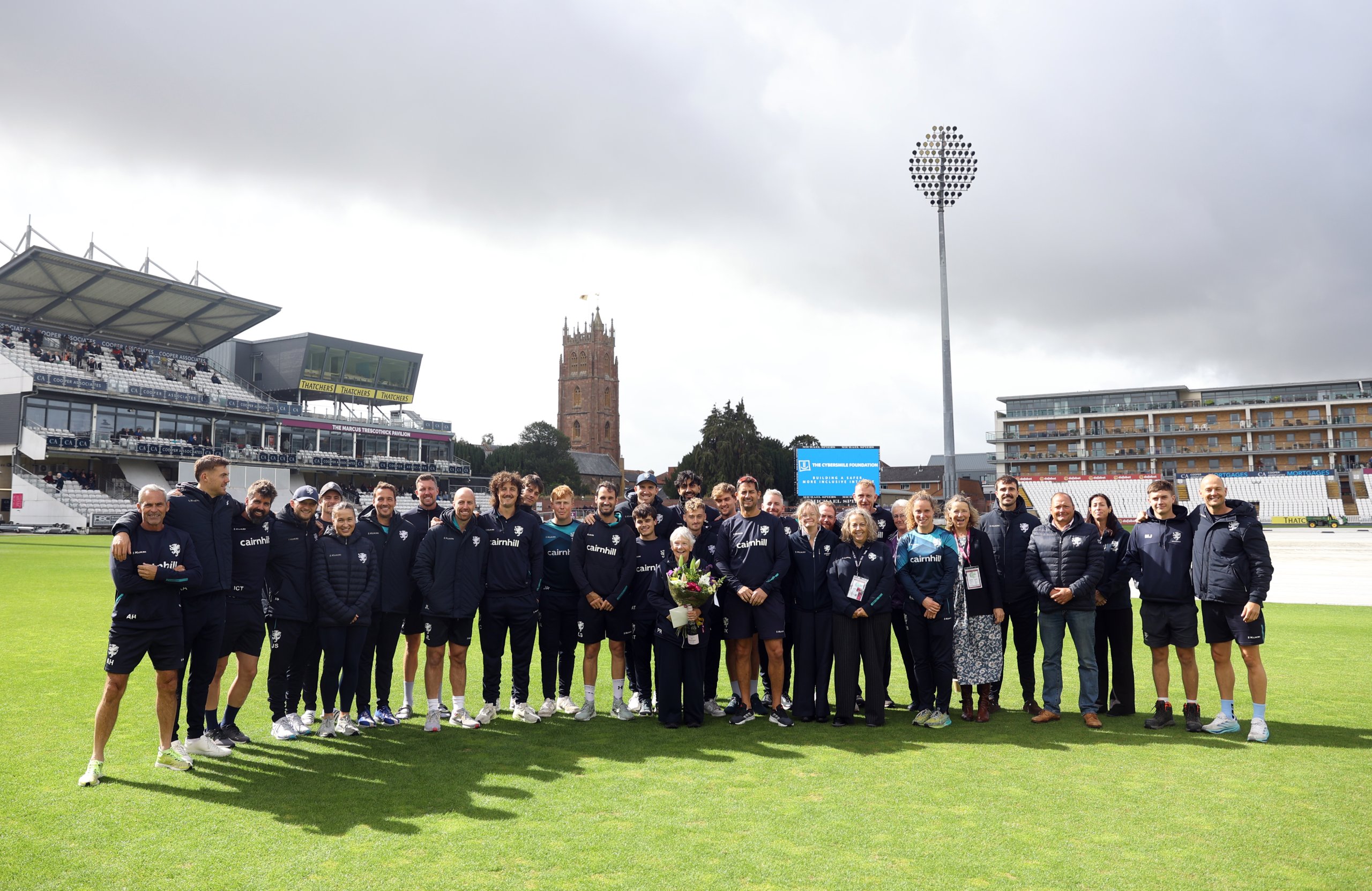 Before scoring, Polly taught home economics and needlework, and two years ago she turned her hand to making a new Somerset CCC flag, which flies from the Andy Caddick Pavilion on matchdays.