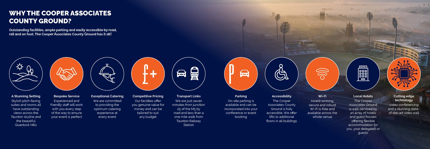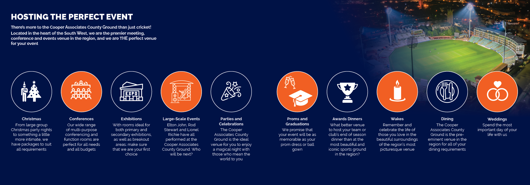 The Cooper Associates County Ground is the most iconic venue in the South West, and it’s the perfect location for your event.