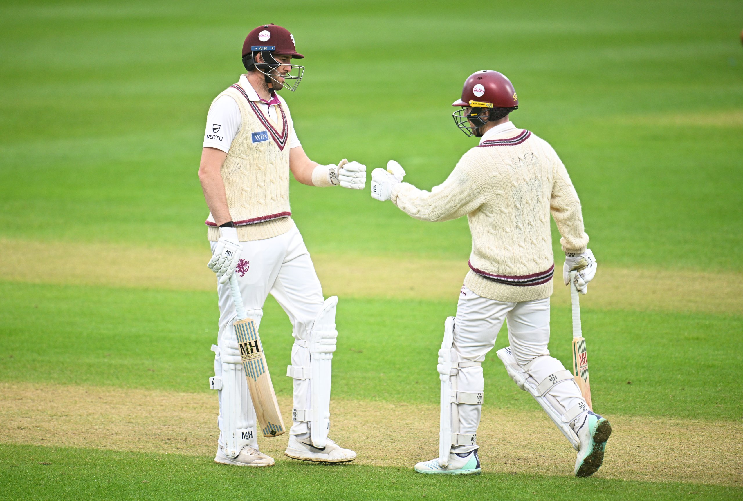 The Somerset innings needed impetus and fortunately for the home side it came in the form of a partnership between Jack Leach and Craig Overton. The pair brought up their 50 partnership from 68 balls and by the time the tea interval arrived, the total had moved to 195 for seven.