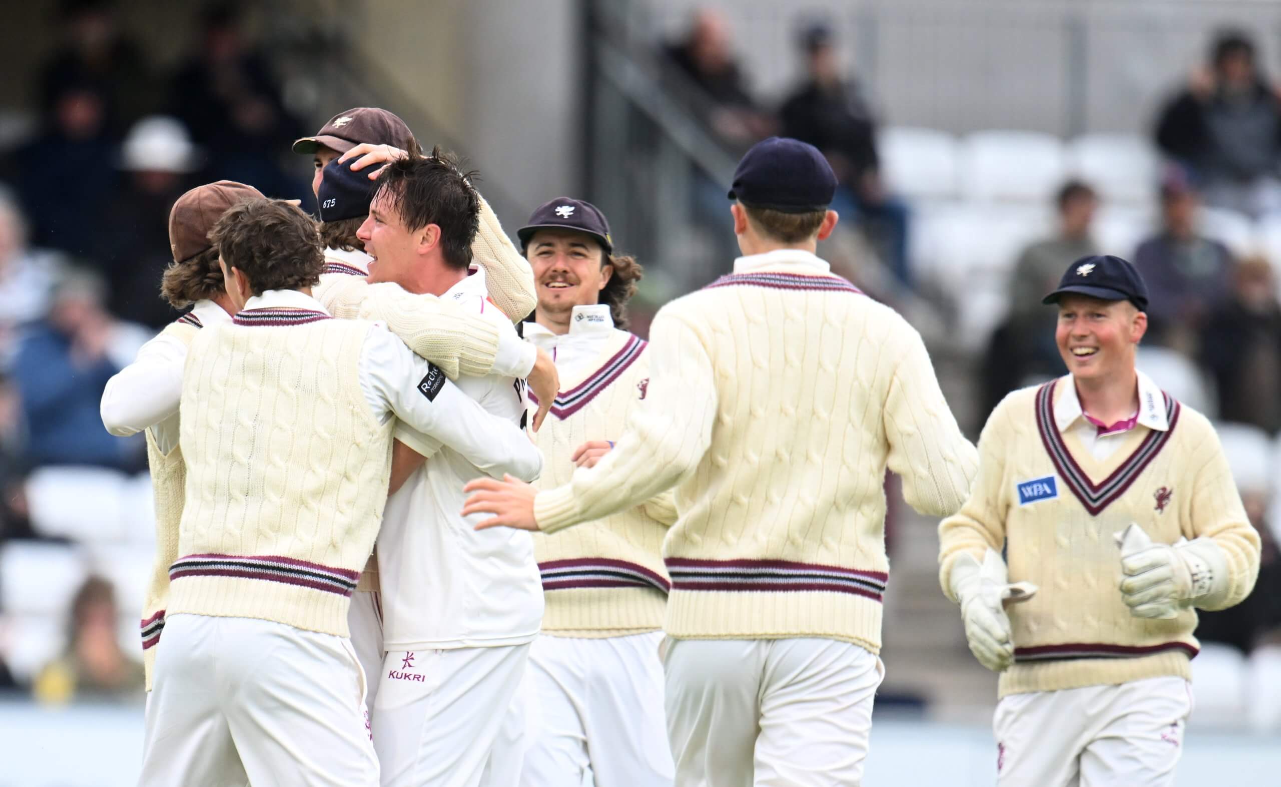 The home side resumed on 292 for six and it wasn’t long before Jack Leach crashed Olly Stone to the boundary to bring up the Somerset 300 and secure a second batting point.